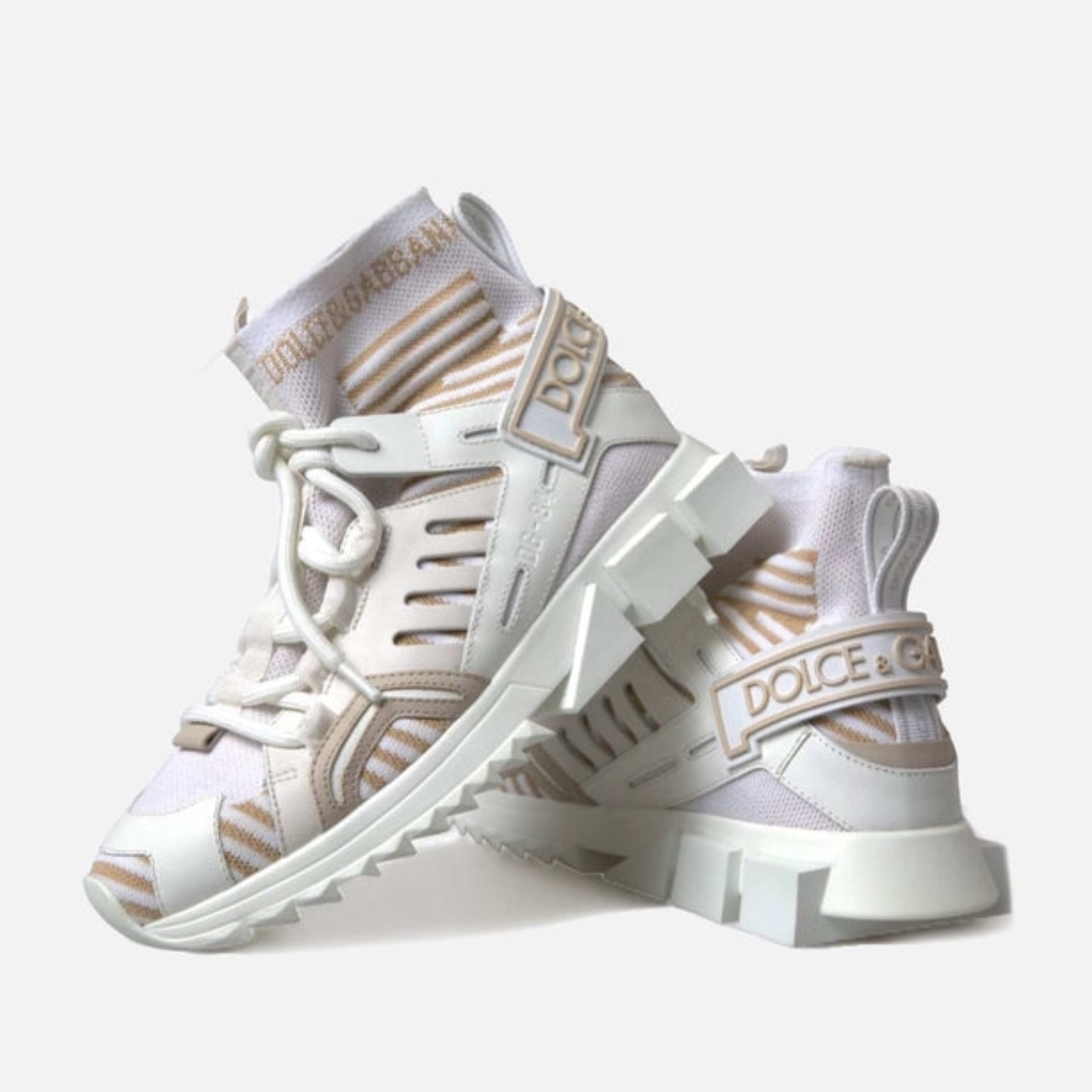 Отдайте се на олицетворението на висшата мода с най-новото ни пристигане, зашеметяващ чифт маратонки, които съчетават лукс с небрежен силует. Тези маратонки идват от престижната къща Dolce & Gabbana и са част от изящната им линия SORRENTO . Бялото и бежовото се смесват, за да създадат елегантен и многофункционален външен вид, който е идеален за всеки изискан мъжки гардероб. Те се отличават със смес от висококачествени материали, отразяващи ангажимента на марката към лукса и високото майсторство, като същевременно гарантират комфорт и издръжливост със здрава гумена подметка. Допълнени с емблематичните детайли на логото на Dolce & Gabbana , тези маратонки са доказателство за съвършенството на италианската мода.